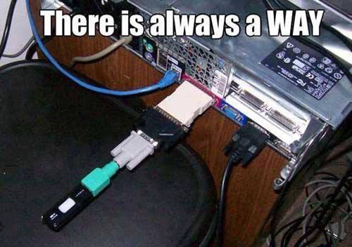 My computer isn’t this bad, but I do have my old German keyboard attached to a USB port using a PS2 to USB adapter.