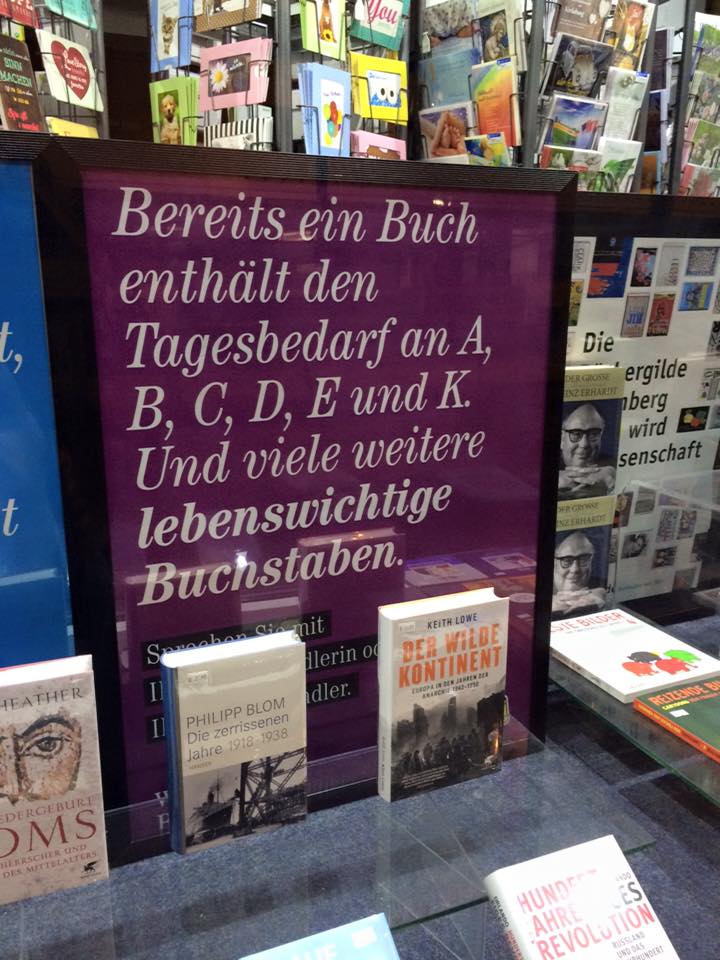 Translation: A book already contains the daily requirement of A, B, C, D, E and K. And many other essential letters.